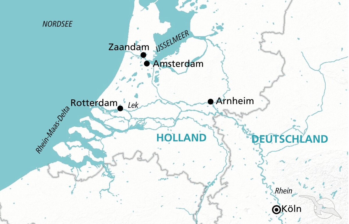 Kom ombord på vores juleadvents flodkrydstogt til Holland fra Köln, og forkæl dig selv med et par fridage under en kort juletur til Rotterdam, Amsterdam og Arnhem. I vågner op i Rotterdam på første hele juledag på flodkrydstogtet. Oplev den pulserende storby og dets julemarkeder, inden I sejler videre til Amsterdam om aftenen. Amsterdam er kosmopolitisk, malerisk og nogle gange lidt drømmende. En farverig buket af seværdigheder venter her på jer og masser af julestemning omkring kanalerne. Her efter sejler vi opstrøms til Arnhem gennem det Nedre Rhin-område og så tilbage til Köln, hvor igen kan besøge de 3 hyggelige julemarkeder. Et dejligt skøn mini juleflodkrydstogt som giver balsam til sjælen.