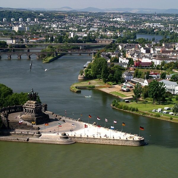 På kombineret cykel- og flodkrydstogt oplever du den smukke natur fra både vand- og landsiden. Fordyb dig i historien og oplev to af Tysklands mest berømte vinregioner langs de smukke floder Rhinen og Mosel på denne vidunderlige tur. Her hvor kelterne slog sig ned, og romerne introducerede vindyrkning, forbinder Rhinen og Mosel og de fremragende cykelstier langs deres bredder alle seværdighederne. Start- og slutpunktet er den romerske by Koblenz, hvor Mosel løber ud i Rhinen ved “Deutsche Eck”. Koblenz.