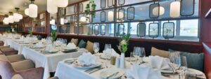 Smagfuld og elegant atmosfære. Panorama restaurant “Four Seasons” (bord kan reserveres) Elegant bar, bibliotek, sauna, vaskeri. Stort soldæk med lille pool, XL skaksæt, liggestole, siddepladser og skyggefulde områder og siddeterrasse foran Wi-Fi (mod betaling)