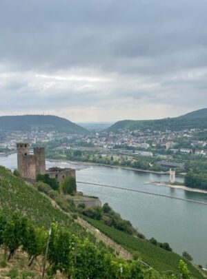 Den maleriske by Rüdesheim ligger direkte ved Rhinen i Hessen og har adskillige seværdigheder, såsom den berømte Drosselgasse, hvor der er talrige vinbarer, men også et slot og et torturmuseum, der viser middelalderlige torturinstrumenter og inkvisitionens historie. En svævebane går op til Niederwald-monumentet, som ligger over byen. Herfra kan du tage en smuk vandretur gennem uberørte skovområder retur til Rüdesheim.