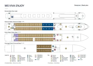 VIVA ENJOY er den tredje nye bygning fra VIVA Cruises og inviterer med 95 kahytter op til 190 passagerer til at nyde stunder af velvære ombord. Der er otte luksuriøse suiter på Diamantdækket, som med en størrelse på 24 m² og en fransk altan inviterer til at nyde den smukke udsigt. På Diamond Deck og på Ruby Deck er der 15 m² 2-sengs kahytter med fransk altan. På Emerald Deck har 2-sengs kahytterne vinduer, der ikke kan åbnes. Alle kahytter er perfekt udstyret med fladskærms-tv, inkluderet minibar, Nespresso®-maskine, skønhedsprodukter fra RITUALS®, hårtørrer, pengeskab, aircondition, bad og toilet og lader intet tilbage at ønske.