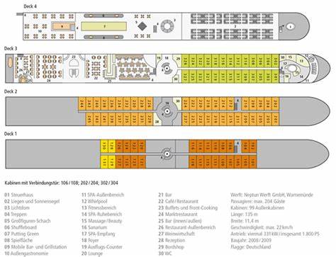 - Morgenmad og frokost fra gourmetbuffeten, middag enten fra gourmetbuffeten eller serveret ved bordet, med levende madlavning og regionale specialiteter, andre ekstra kulinariske aktiviteter ombord.