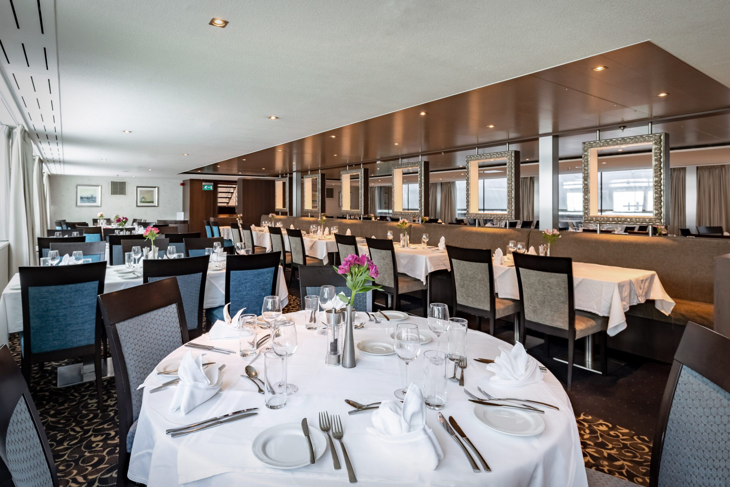 - Omfattende morgenmads-, frokost- og middagsbuffeter med live-cooking-stationer, ombordstigningssnack samt daglig te- og kaffetid